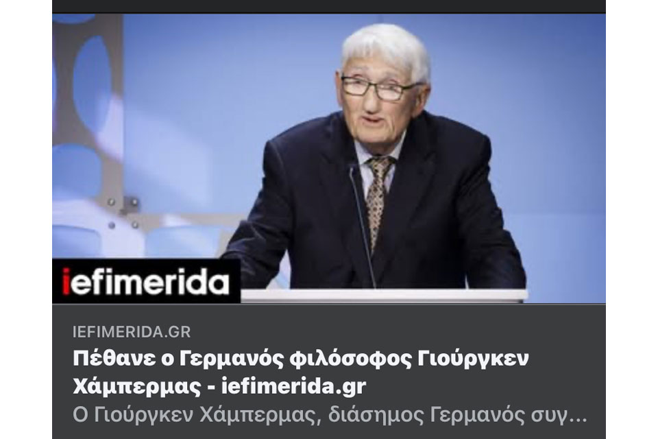 «Κατά τον Habermas, ο πολιτισμός που έχει εντάξει ως λειτουργικό στοιχείο του την κριτική, μπορεί να επεξεργασθεί λύσεις στα προβλήματα της εποχής του, χωρίς τους υπερ-καθορισμούς του θετικισμού και του νεοφιλελευθερισμού στην πολιτική» είχε γράψει κάποτε ο πολιτικός φιλόσοφος Θ. Γεωργίου.